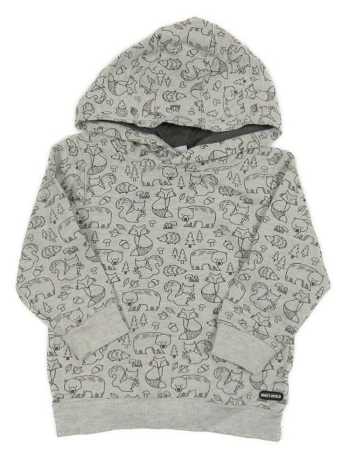 Světlešedá melírovaná mikina s lesními zvířaty a kapucí Topomini