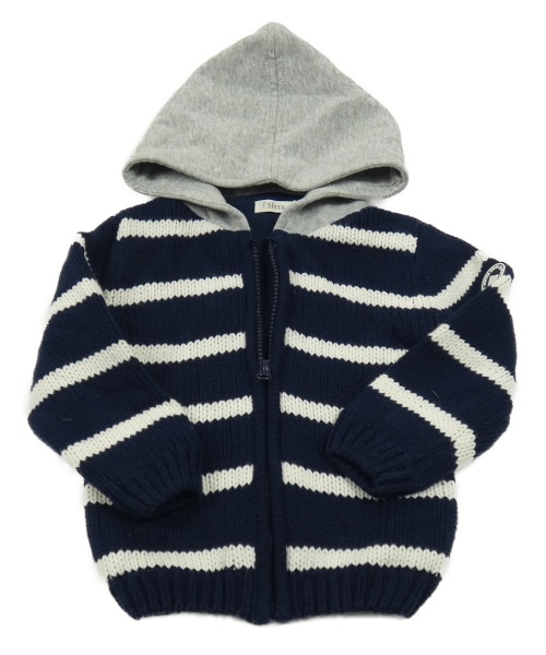Tmavomodro-bílý pruhovaný podšitý propínací svetr s teplákovou kapucí Sfera