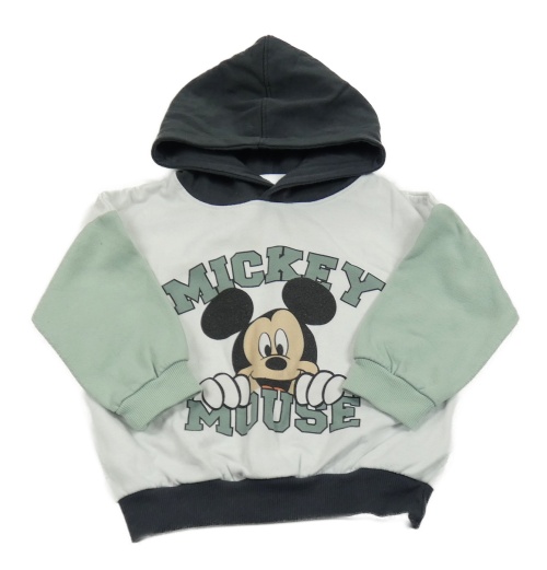 Bílo-zeleno-antracitová mikina s Mickeym a kapucí Disney