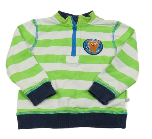Limetkovo-bílá pruhovaná mikina s pejskem Liegelind