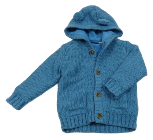 Modrý pletený propínací podšitý svetr s kapucí s oušky lupilu