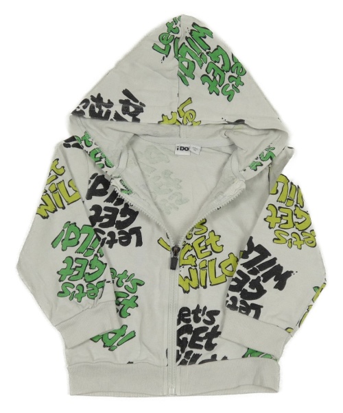 Bílá propínací mikina s nápisy a kapucí