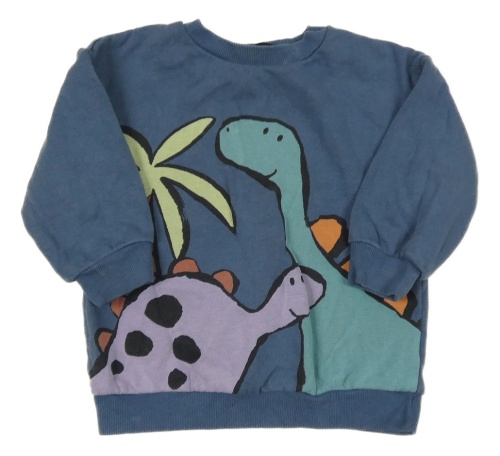 Modrošedá oversize mikina s dinosaury a palmou Next