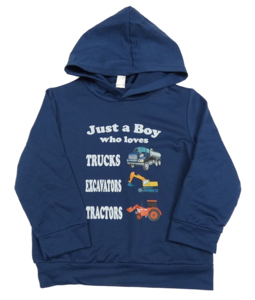 Tmavomodrá lehká mikina s nápisy, bagry a kapucí