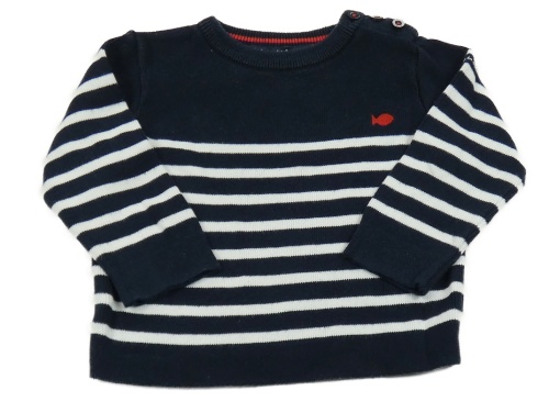 Tmavomodro-bílý pruhovaný svetr s výšivkou