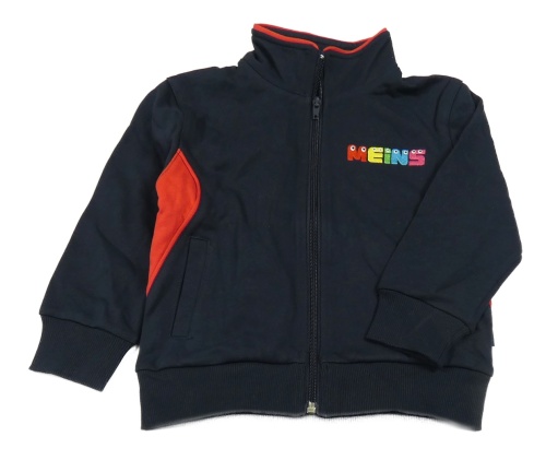 Tmavomodro-červená propínací mikina s nápisem