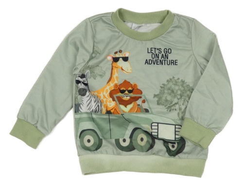 Olivová mikina s jeepem a zvířátky