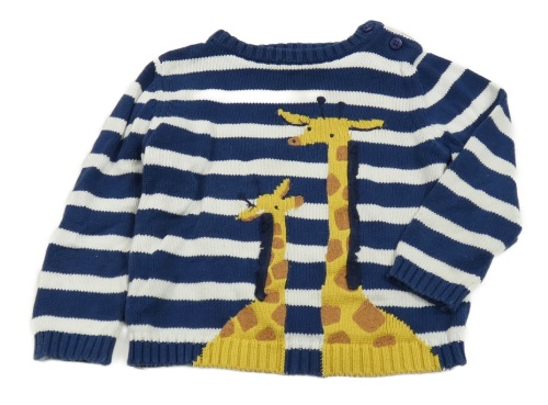 Tmaovmodro-bílý pruhovaný svetr s žirafami John Lewis