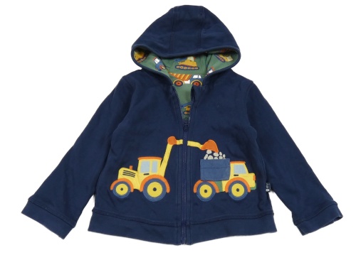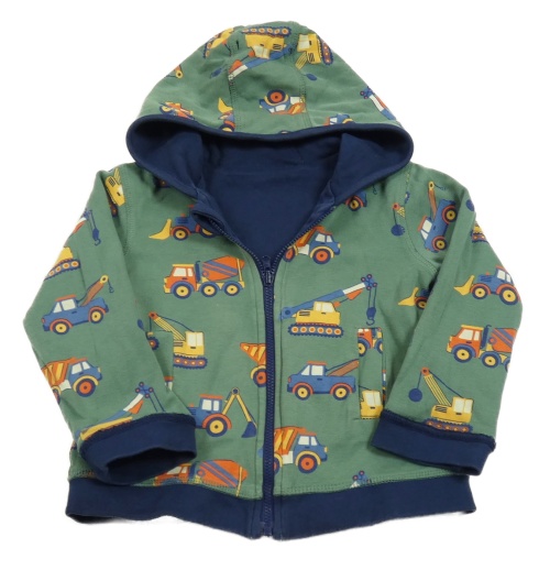 Zelená propínací oboustranná mikina s bagry a kapucí Jojo Maman Bébé