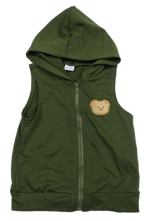 Khaki tepláková propínací vesta s medvídkem a kapucí