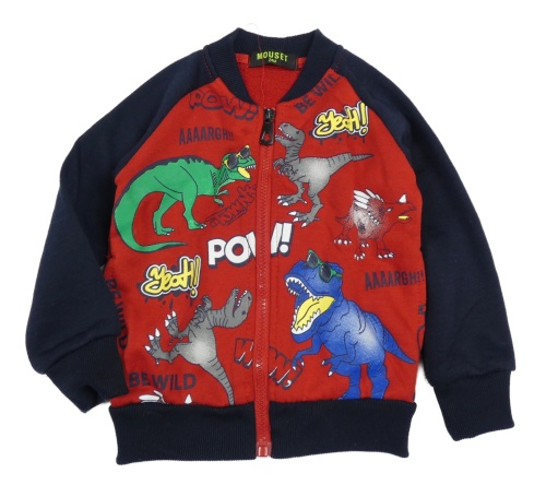 Červeno-tmavomodrá propínací mikina s dinosaury Mouset