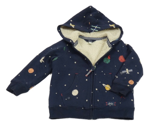 Tmavomodrá zateplená propínací mikina s planetami a kapucí Joules