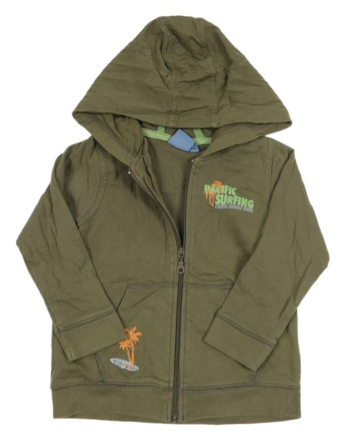 Khaki propínací mikina s palmami a nápisy a kapucí impidimpi