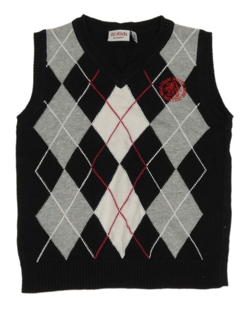 Černo-šedo-bílá károvaná pletená vesta
