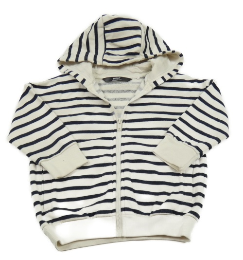 Bílo-tmavomodrá pruhovaná propínací mikina s kapucí Next