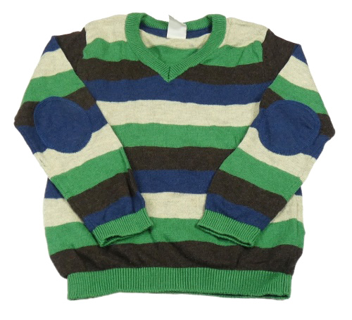 Zeleno-kávovo-modrý pruhovaný vlněný svetr s náloketníky H&M
