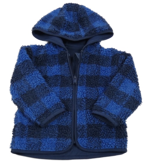 Tmavomodro-modrá kostkovaná huňatá podšitá mikina s kapucí M&S