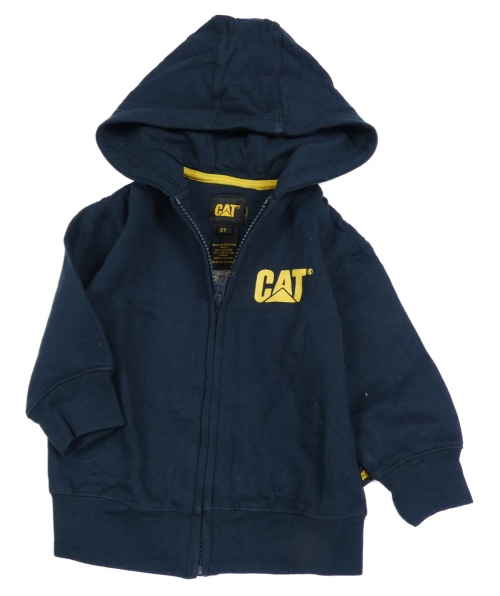 Tmavomodrá propínací mikina s lokomotivou a kapucí CAT