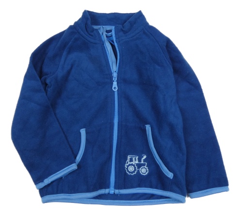 Tmavomodrá fleecová propínací mikina s traktorem POCOPIANO