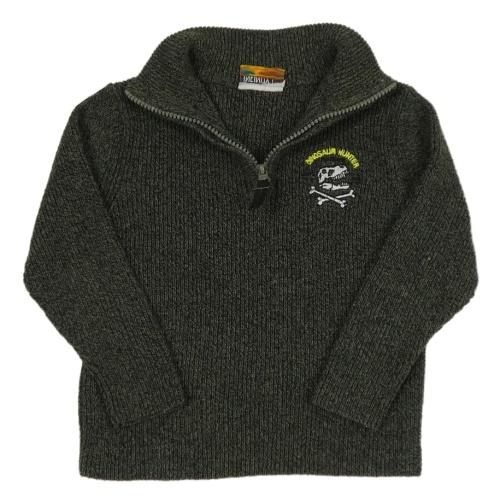 Khaki melírovaný svetr s lebkou dinosaura Infinity Kids