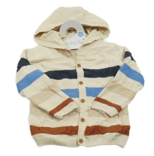 Nové - Béžový propínací podšitý svetr s pruhy a kapucí Tu
