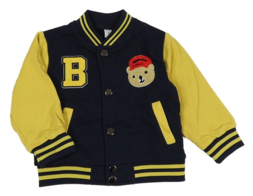 Tmavomodro-žlutá propínací baseballová mikina s medvídkem