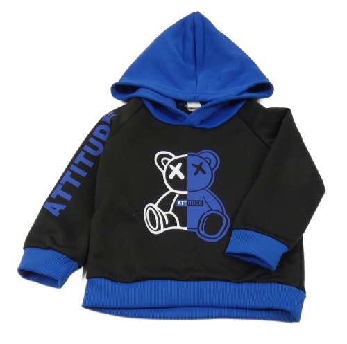 Černo-tmavomodrá mikina s medvědem a kapucí Shein