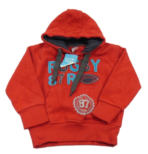 Nové - Červená žebrovaná mikina s nápisem a kapucí