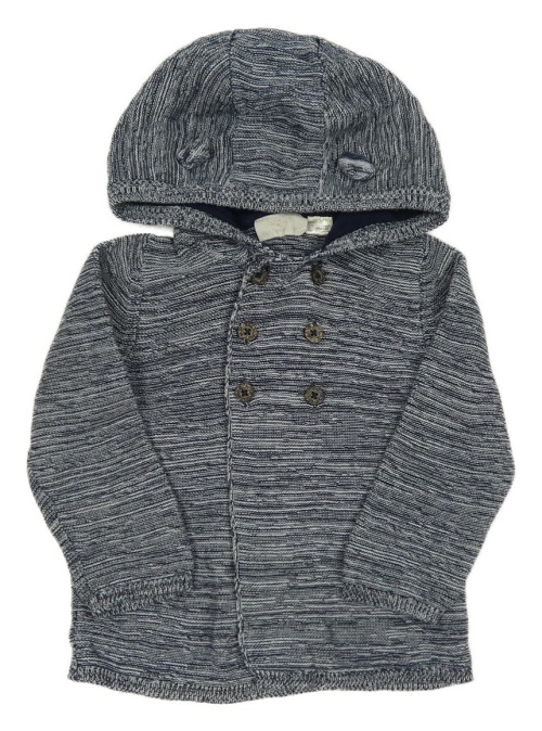 Tmavomodrý melírovaný propínací svetr s kapucí Lupilu