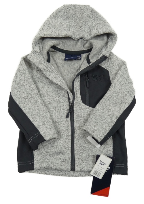 Nové - šedo-tmavomodrá melírovaná pletená propínací thermo mikina s kapucí Reebok