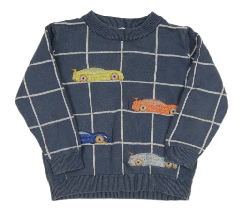 Tmavomodrošedo-bílý kostkovaný svetr s auty M&S