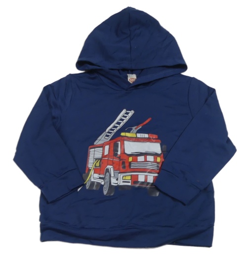 Tmavomodrá lehká mikina s hasičským autem a kapucí