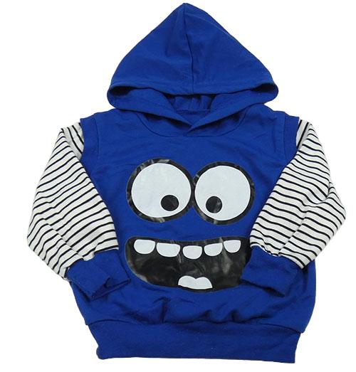 Safírovo-bílo-černá mikina s příšerkou a kapucí