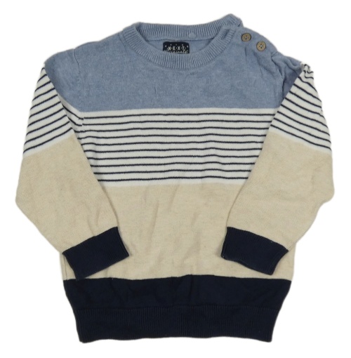 Modro-bílo-světlebéžovo-tmavomodrý melírovaný svetr s pruhy Next
