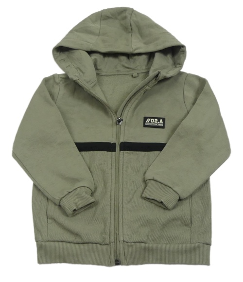 Khaki propínací mikina s proužkem, nášivkou a kapucí George