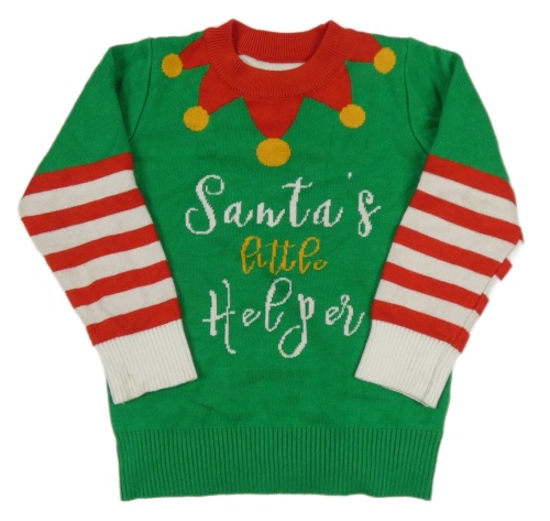 Zeleno-červený svetr s nápisem - Santův pomocník