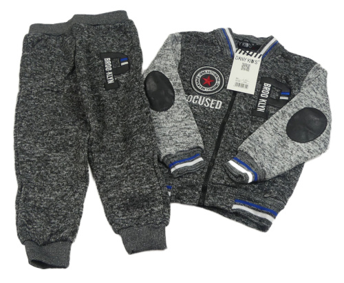 Nové - 2set - Antracitovo-šedá melírovaná pletená propínací mikina s nášivkami + tepláky