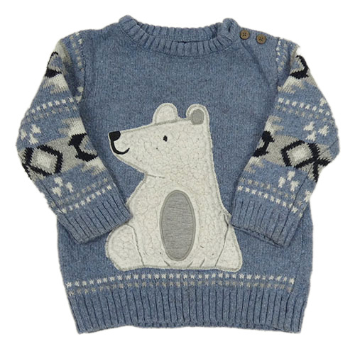 Modro-šedý melírovaný vlněný svetr s ledním medvídkem a vzorem Next