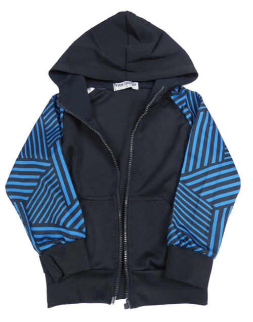Tmavomodrá propínací sportovní mikina s pruhovaným rukávy a kapucí