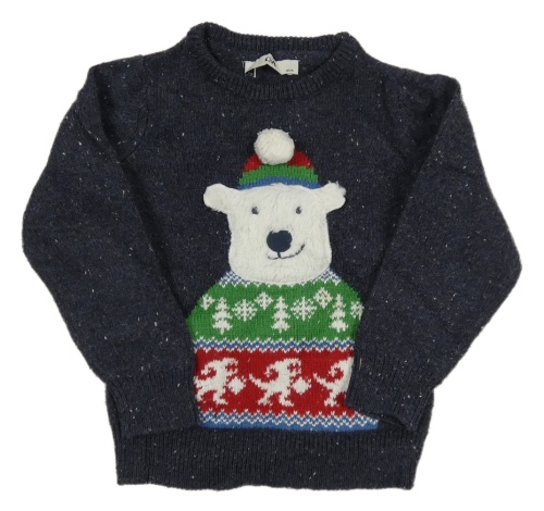 Tmavomodrý melírovaný svetr s medvědem C&A