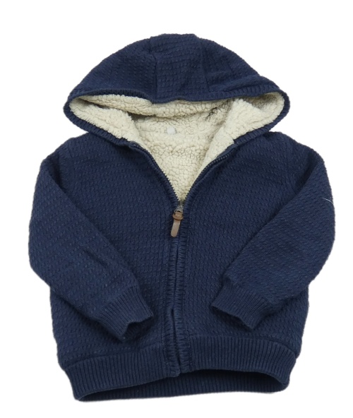 Tmavomodrý pletený zateplený propínací svetr s kapucí M&S