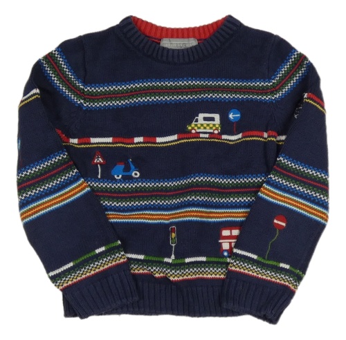 Tmavomodrý pruhovaný svetr s dopravními prostředky Jarvis Archer