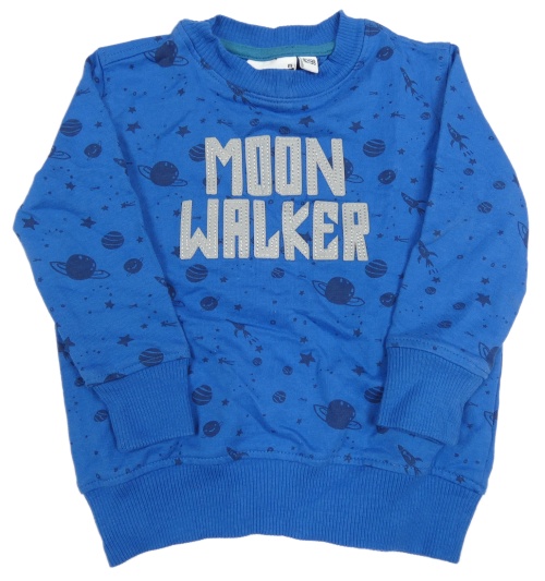 Modrá mikina s planetami a nápisem