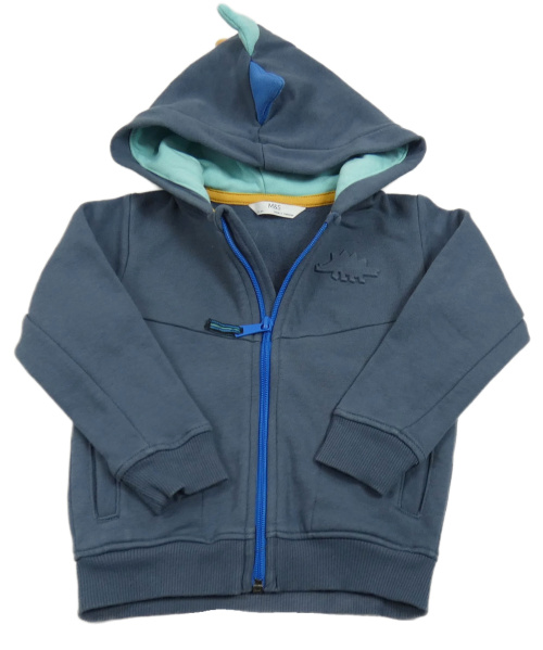 Tmavomodrošedá propínací mikina s 3D dinosaurem a kapucí s ostny M&S