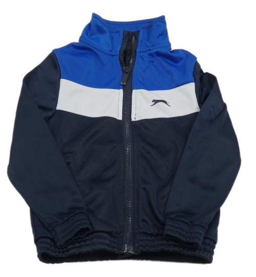 Tmavomodro-modro-bílá sportovní propínací mikina s logem Slazenger