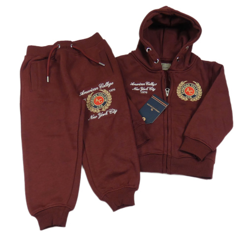 Nové - 2set - Mahagonová propínací mikina s nápisem a kapucí + tepláky Amerian College