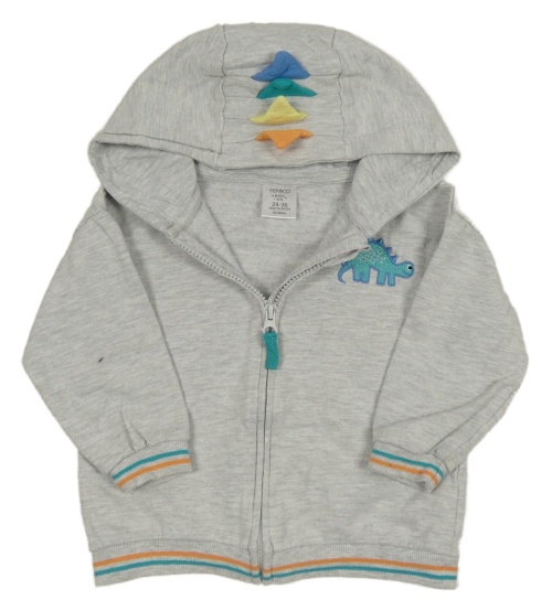 Šedá propínací mikina s dinosaurem a kapucí Pep&Co