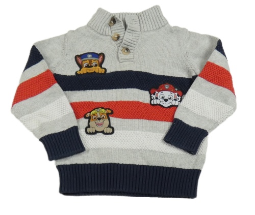Šedo-tmavomodro-červeno-bílý pruhovaný svetr - Tlapková Patrola