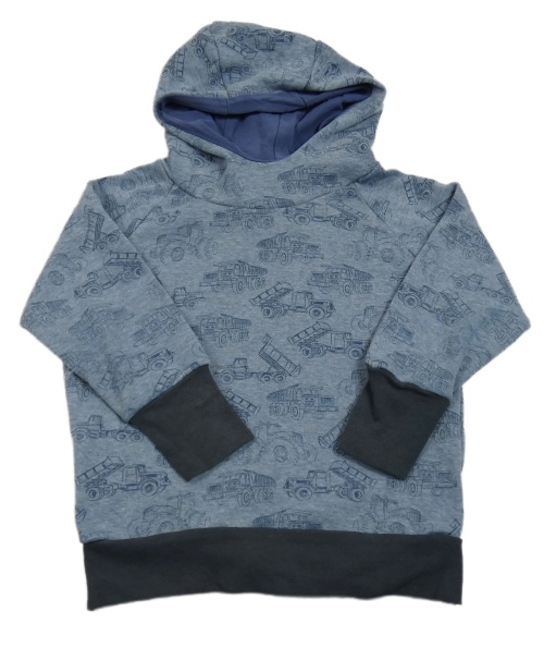 Světlemodro-šedá mikina s náklaďáky a kapucí