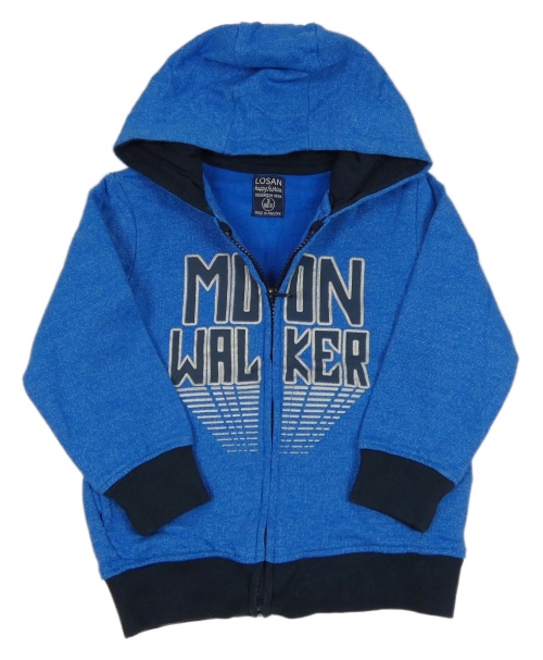 Modrá melírovaná propínací mikina s nápisem a kapucí Losan